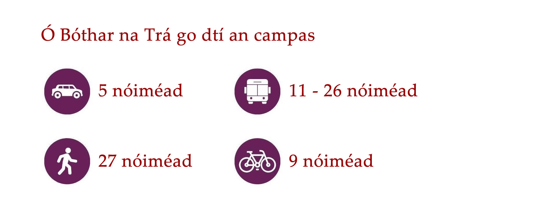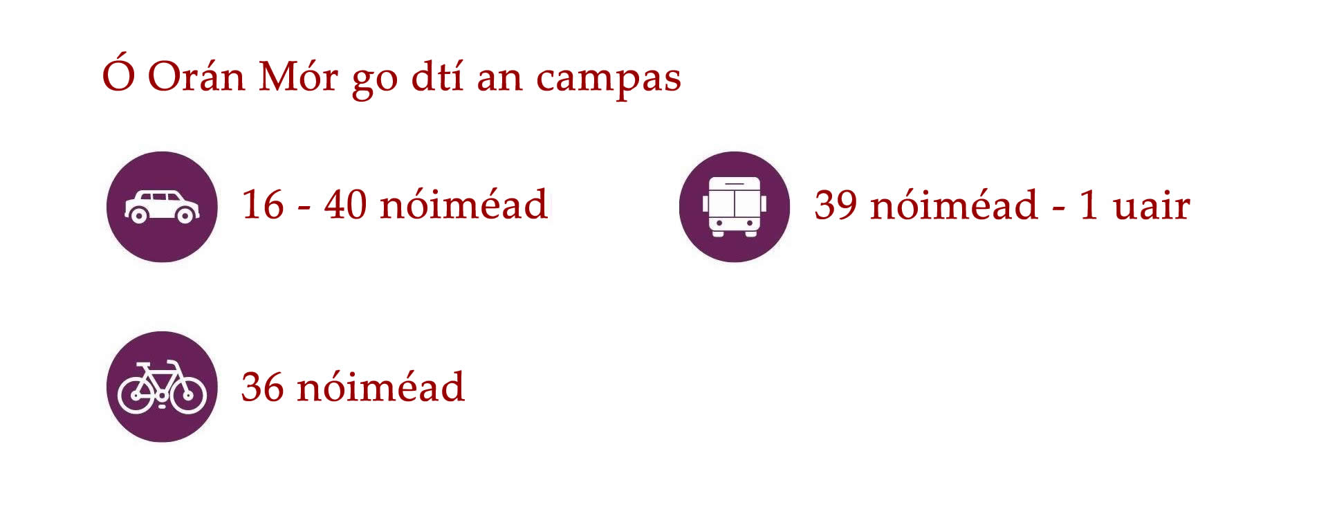 Cé go bhfuil an-éileamh ar thithe i nGaillimh, tá roghanna éagsúla ar fáil do mhic léinn ar fud Chathair na Gaillimhe agus an cheantair máguaird. Is iomaí bealach bus ar fud na Gaillimhe agus traenacha chuig na ceantair máguaird. Is féidir leat rothar athláimhe a cheannach go háitiúil freisin nó rothair a fháil ar cíos TFI bikes.